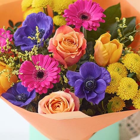 A sweet little giftbox with a bright handcrafted bouquet inside.