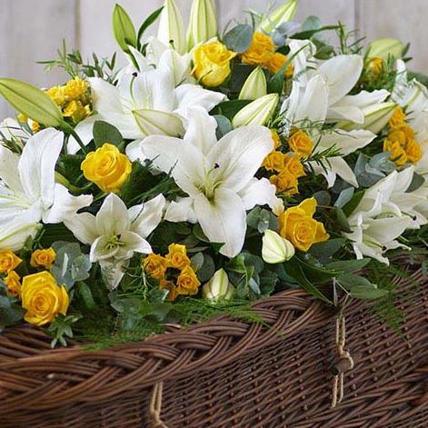 A classic spray of roses and fragrant oriental lilies contrasted beautifully with foliage.