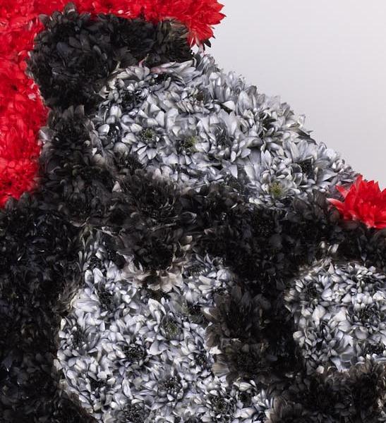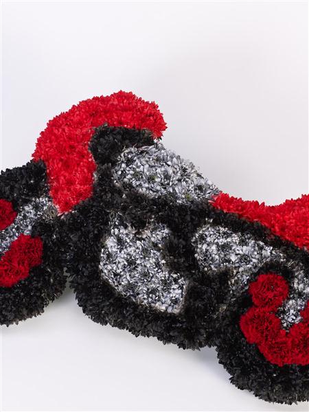 Pay tribute to their love of motorcycles with this distinctive floral display. The motorbike is covered in a bed of fresh red carnations and white double spray chrysanthemums and finished with silver, red and black spray colours.