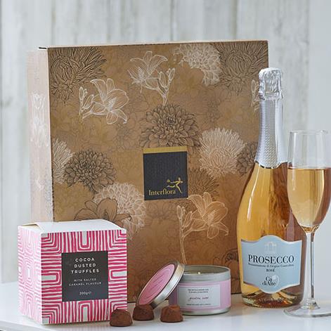Prosecco Rose, Salted Caramel Flavour Truffles and Candle
