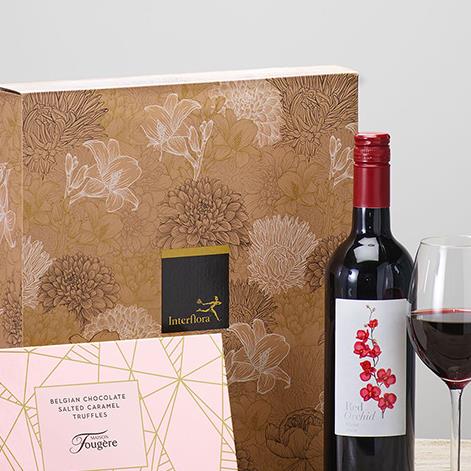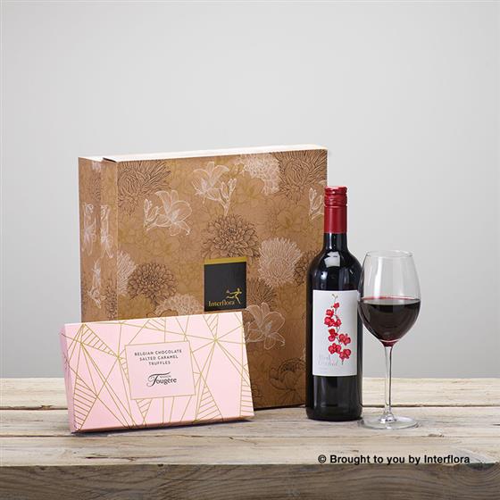 This lovely gift set combines a 75cl bottle of Red Wine and a box of yummy Maison Fougère salted caramel chocolate truffles in a presentation box - to help them celebrate their special moment.