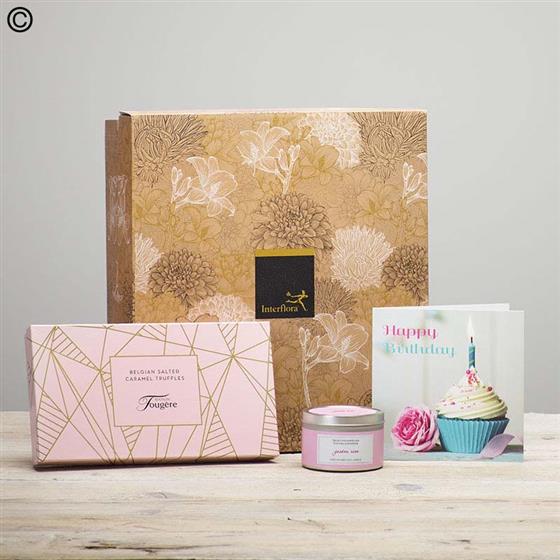 It's their birthday so treat them to something extra special. Salted caramel chocolates, a beautiful Garden rose candle and a fun cupcake card should do the trick.