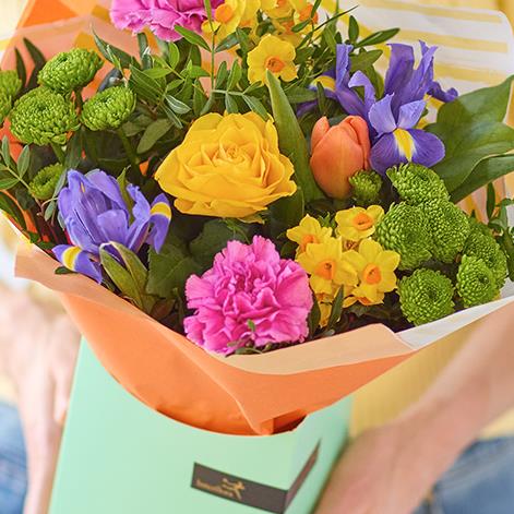A lovely little giftbox with a colourful handmade bouquet inside.